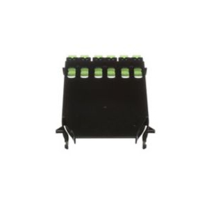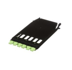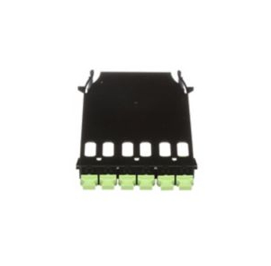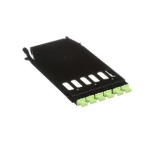 The HD Flex Fiber Adapter Panel features 6 MPO ports with type A adapters. It features key-up to key-down adapters and is black with lime green dust plugs.