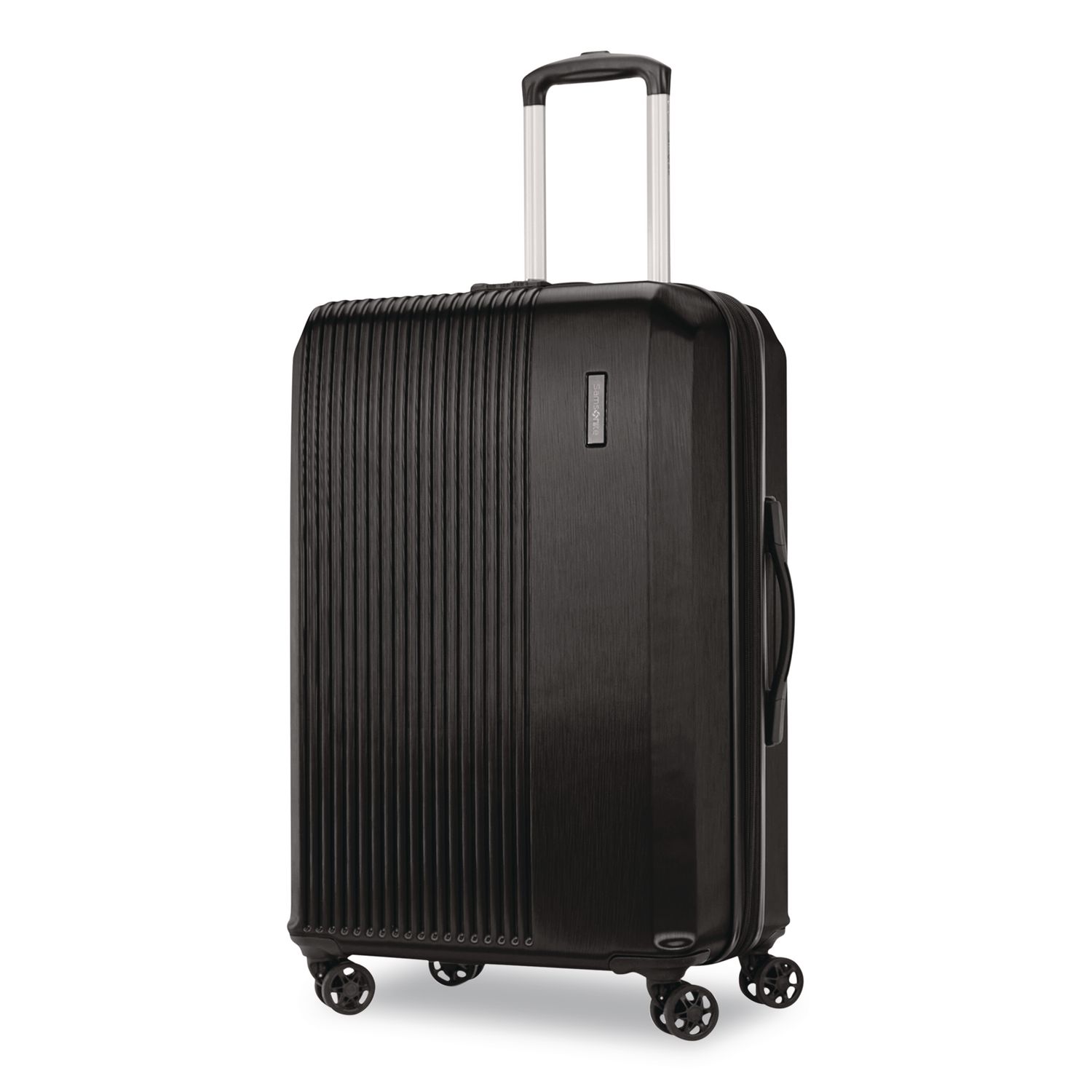 The Samsonite® Alliance SE spinner in a boxy yet modern design will never go out of style. The extra packing volume allows maximum capacity for your journey. The butter-smooth rolling dual spinner wheels, simple yet functional interior with two-sided silky soft mesh dividers, and overall case expansion accommodate for extra packing needs, all complete with a highly scratch-resistant texture for the maximum durability. Color(s): Bass Black; Color Family: Black; Material(s): Polycarbonate/ABS; Carrying Handle: Yes.