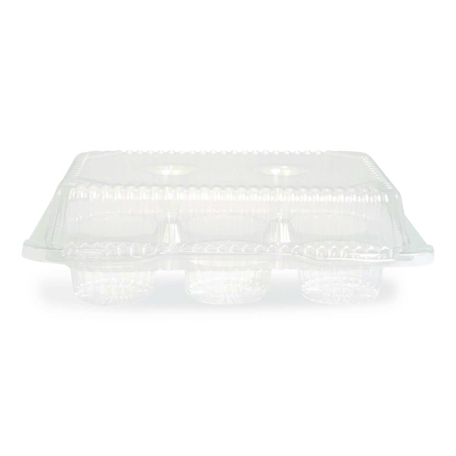 The ideal choice for storing, transporting and displaying cakes and desserts. Transparent domes improve the product's visibility for better appreciation. They are perfect for events, celebrations, supermarkets, bakeries and catering services. Stackable. Muffin/Cupcake Container—Clear top and base. Food Container Type: Hinged Lid Container; Material(s): PET - Polyethylene Terephthalate; Material Type: Plastic; Color(s): Clear.