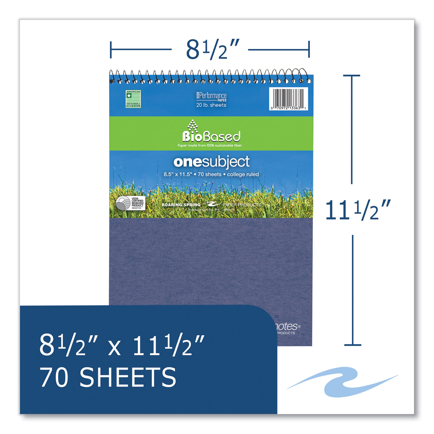 Environotes wirebound notebook. Smooth, white, writing paper is college ruled with a red margin line. Paper is produced from Sugarcane fiber, a sustainable post-agricultural paper. Paper is high-performance 20 lb allowing writing on both sides. Covers are produced from high-recycled content 25-point Reprise board. Wire ends are coil-locked for snag-proof performance. Pocket-Sized Indicator: N; Book-Binding Type: Spiral Coil; Book-Binding Details: Coli-Lock; Book-Binding Edge: Top.