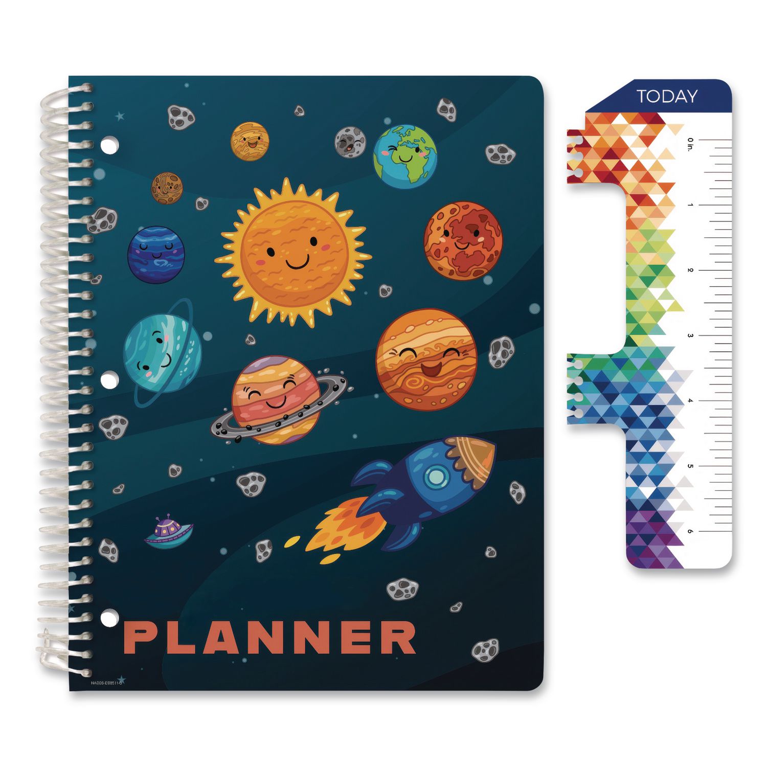Rocket through the solar system with the Happy Planets Elementary Student Assignment Organizer. Before each set of weekly spreads, a four-month spread helps students plan for what's to come, and each following weekly spread delivers a handy study tip as well as a checklist for the top three goals of the week. From there, the weekly spreads provide plenty of space for seven subjects per day with extra space for the weekends, followed by nearly 20 pages of education resources to help industrious students navigate ahead. Calendar Term: August 2025 to June 2026. Pocket Sized: No; Book-Binding Type: Spiral Coil; Book-Binding Details: Coil-Lock Spiral Wire; Book-Binding Edge: Side.