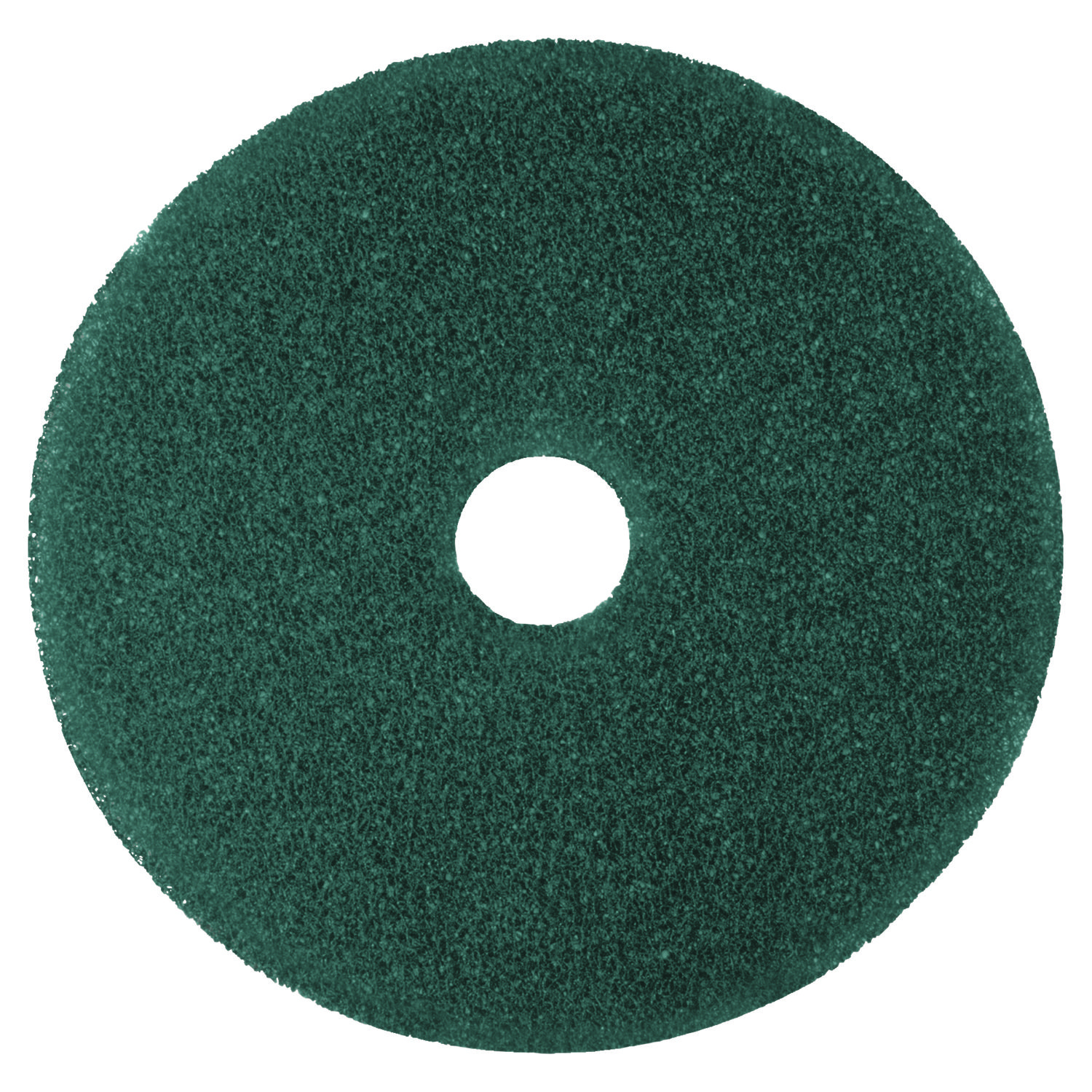3M™ Blue Cleaner Pad 5300 is designed to remove worn finish, soils, scuffs, and spills and to prepare surfaces for recoating. The pad is constructed of high quality nylon and polyester synthetic fibers in a non-woven web. A durable resin coating system permeates the fibers throughout the pad with abrasive cleaning particles, providing consistent performance over the life of the pad. The resin coating will not be significantly affected by water, detergents, and cleaners normally used for floor maintenance. The floor scrubbing pad is reversible. Depending on the surface and application, the floor pad can be used with detergent solutions for dry scrubbing floors, and in heavy duty spray cleaning operations. Floor Pads Application: Scrubbing; Diameter: 15"; Color(s): Blue; Color Family: Blue.