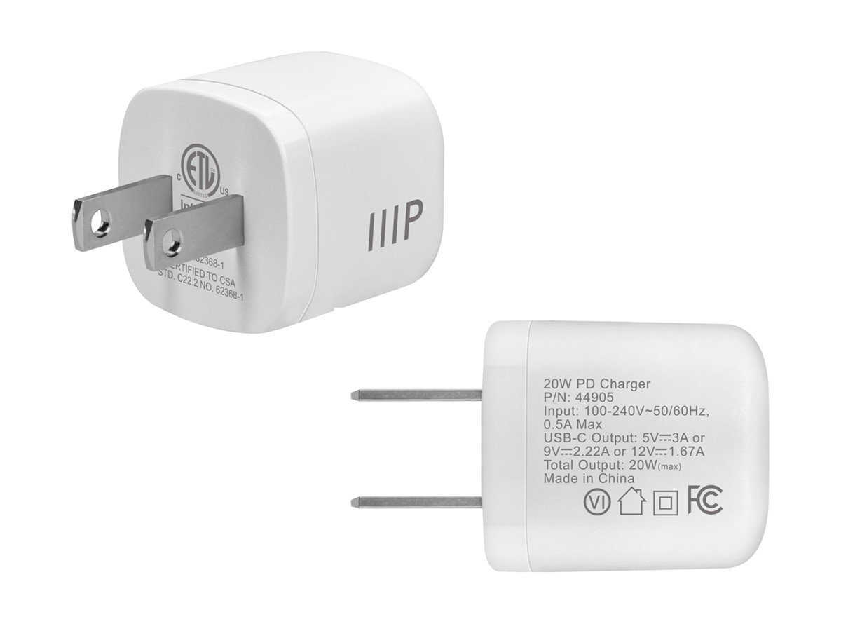 Monoprice™ 20W USB‑C® Mini Cubic Wall Charger is the smallest charger of its kind in the market today with an unparalleled charging speed. At 20W, it's 3x faster than conventional 5W chargers, and it charges Apple® mobile phones from 0 to 55% battery level in just 30 minutes. It’s also widely compatible with other USB‑powered devices like the AirPods® wireless earbuds, MagSafe Duo® wireless chargers, iPad® tablets, Samsung Galaxy® and Google Pixel™ phones, the Nintendo Switch™ handheld gaming console, and more. The ultra‑compact, lightweight design helps declutter your space and is easy to pack for travel. This charger is ETL‑certified to protect from overheating, overcharging, excessive current, or short circuits.