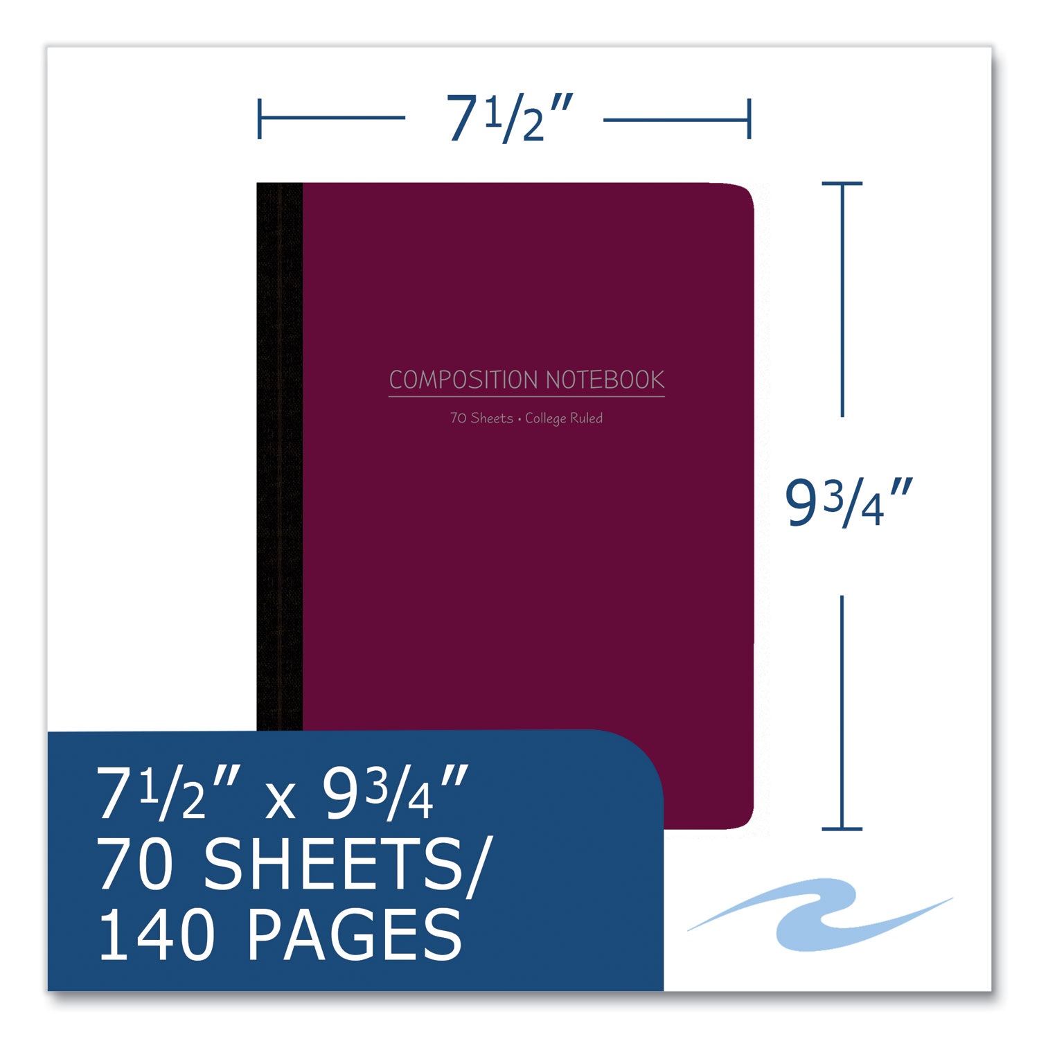 Record your notes in this permanently bound composition book. Paper is smooth 15# writing paper with blue lines and a red margin line. Cover is durable, flexible 12-pt poly (great for backpacks!). Each book is produced with center-sewn and tape bound construction, not designed for sheet tear-out. Pocket-Sized Indicator: N; Book-Binding Type: Taped; Sewn; Book-Binding Edge: Side; Cover Color: Randomly Assorted