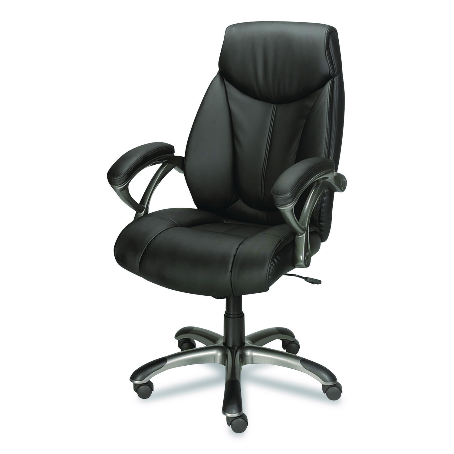 Enjoy all-day ergonomic comfort with this Workplace2.0™ Ramsey Bonded Leather high-back manager's chair with built-in lumbar support. Made to prevent lower back pain and fatigue, this premium bonded leather office chair is an ideal upgrade for both comfort and style. The Workplace2.0™ Ramsey Bonded Leather high-back manager's chair features a padded back, seat cushion and armrest for a relaxing feel plus adjustable seat height and back tilt to fit your preferences. Great for a variety of body types, this sturdy ergonomic desk chair has a large, cushioned seat and sturdy base. With durable bonded leather upholstery, this premium chair will add lasting comfort and style to your home or office. Recommended Application Area(s): Executive & Management; General Office & Task; Seat Color: Black; Back Color: Black; Color Family: Black.
