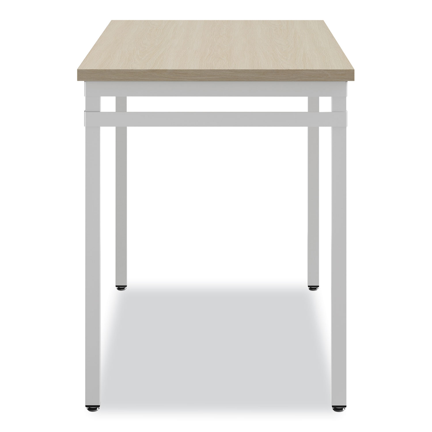 Create a supportive home office or learning space with this distinctive, modern desk. If you're ready to abandon your kitchen table or couch for something more sophisticated, this quick shipping, easy-to-assemble 45.5" width desk is a smart solution. Beige wood laminate with a white powder-coated steel frame complements any décor, while the desk's versatile design scales up or down to suit spaces large and small. Series Name: Safco® Ready™ Series; Worksurface/Base Color: Beige/White; Color Family: Beige; Worksurface Shape: Rectangular.
