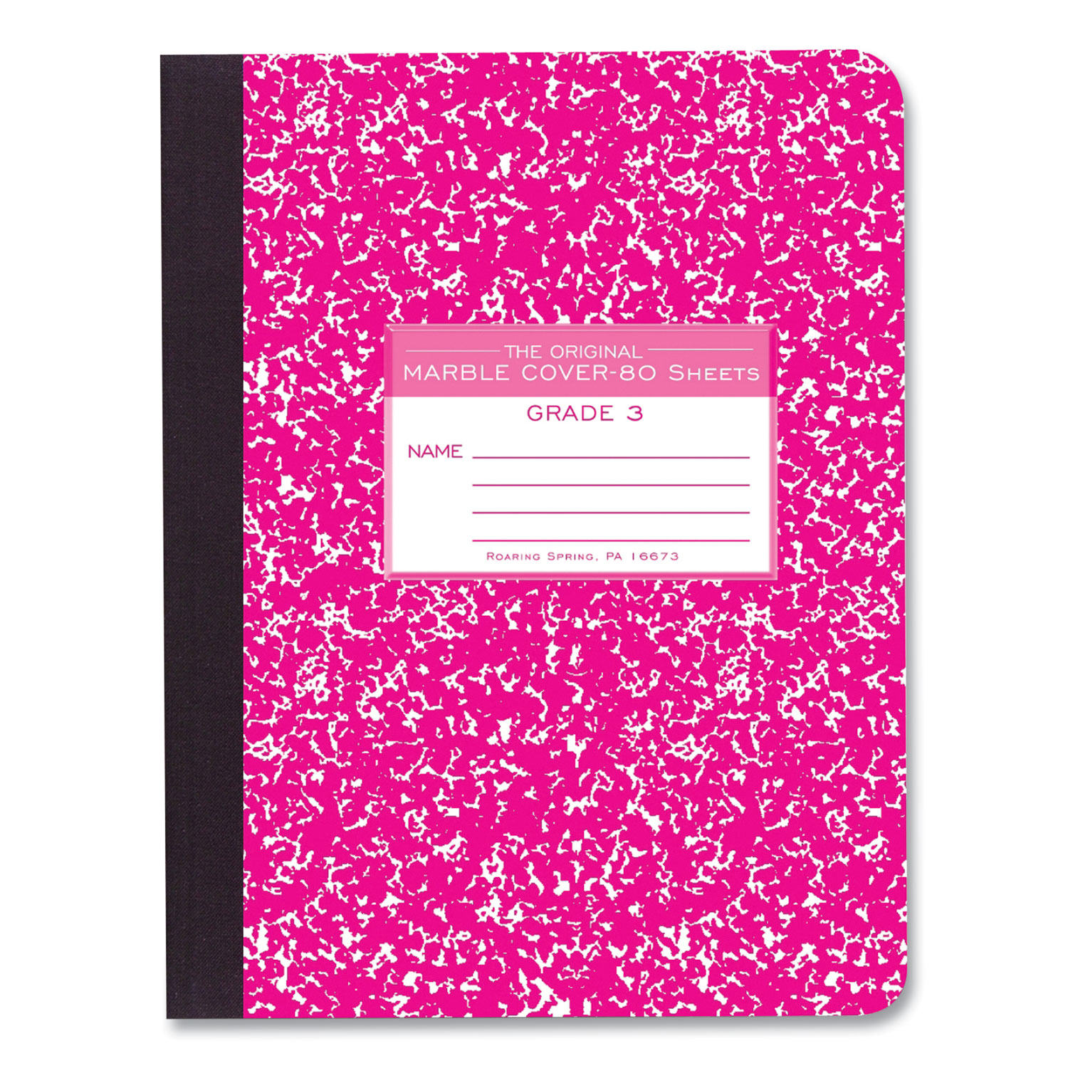 The back-to-school basic for students of all ages. High-quality, ruled paper makes note taking easy. Marbled cover features a generously sized front-cover labeling form. Center-sewn binding. Pocket-Sized Indicator: N; Book-Binding Type: Taped; Sewn; Book-Binding Edge: Side; Cover Color: Magenta Marble