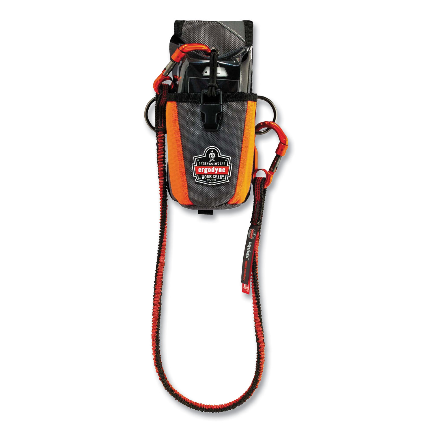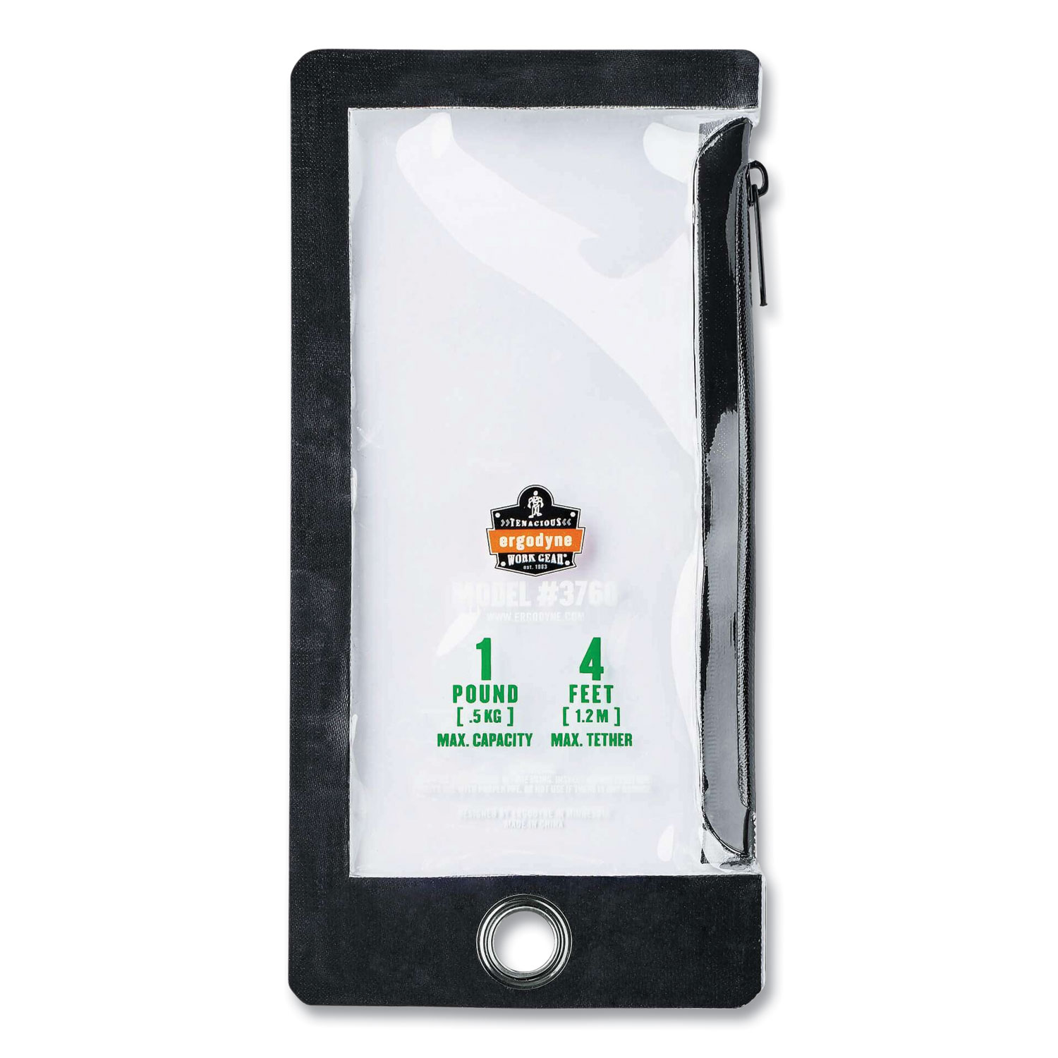 The Squids Water Resistant Phone Pouch and Trap makes it easy to carry and use your cell phone on the job while preventing dropped objects when working at heights. This cell phone pouch is made of a clear touchscreen material that provides protection while still allowing touchscreen use and access to both the front and rear cameras of smartphones. The heavy-duty, easy-to-use zipper closure system safely secures the device inside the cell phone holder. There is a steel grommet/ring on the bottom to attach a tool lanyard for a complete tethering system. The sides of the smartphone pouch are made of heavy-duty, water-resistant reinforced tarpaulin, making it perfect for the harshest work environments. The smartphone sleeve is also great for the beach, boating, fishing, water-theme parks, camping, hiking or any other outdoor activity. Protect your phone from rain, snow, dirt, dust and sand. For Use With: Standard Smartphones; Accessory Type: Pouch; Material(s): Tarpaulin; Color(s): Clear/Black.