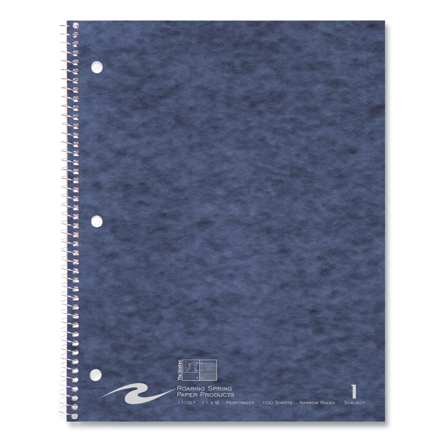 One subject "Stasher" wirebound notebook. Smooth, white, 15 lb writing paper with a red margin line. Sheets are micro-perforated for easy and clean tear-out to 11 x 8.5. There is a storage pocket built into the inside of each cover. Wire ends are coil-locked for snag-proof performance. Pocket-Sized Indicator: N; Book-Binding Type: Spiral Coil; Book-Binding Details: Coil Lock; Book-Binding Edge: Side.