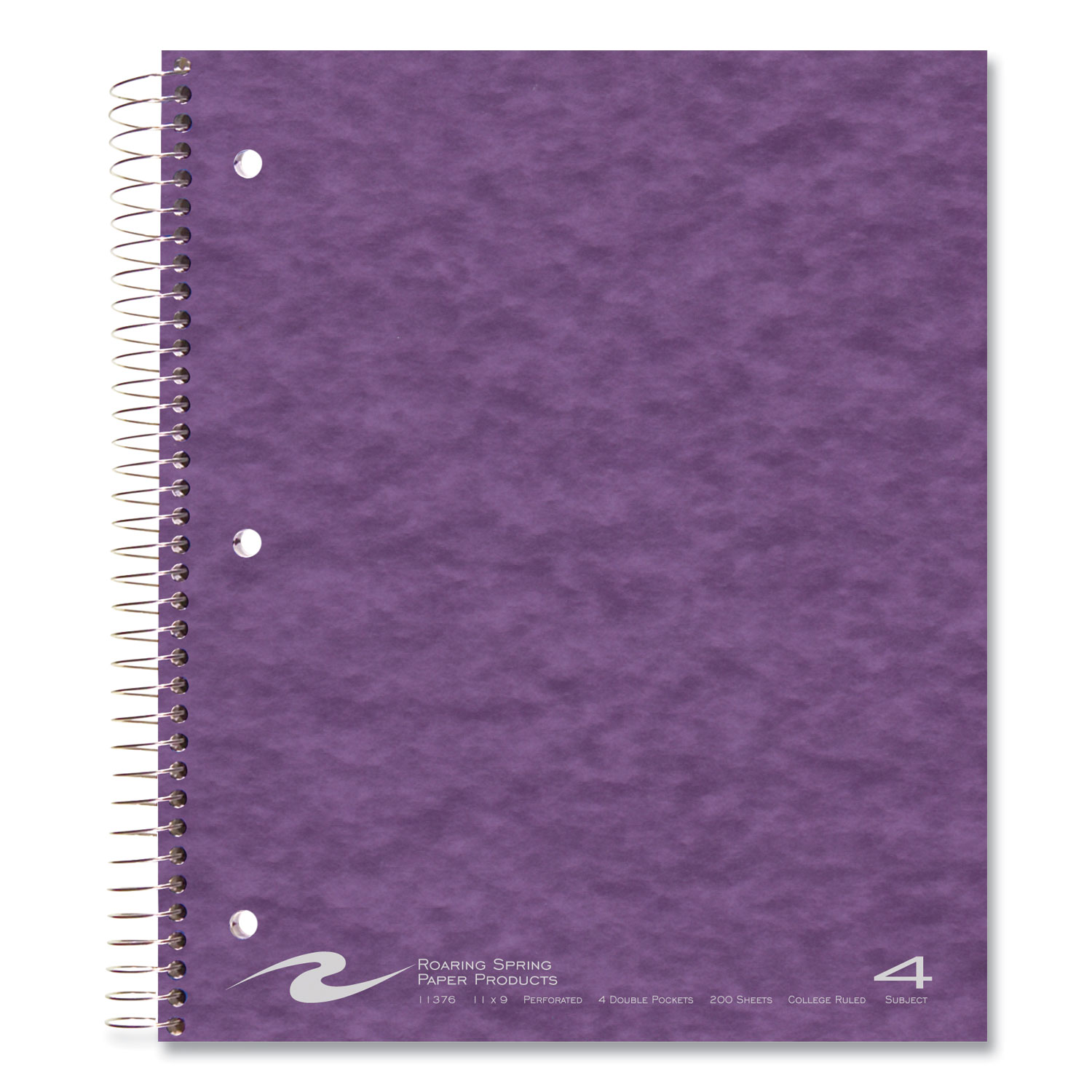 Subject wirebound notebook. Smooth, white, 15 lb writing paper is college ruled with a red margin line. Covers are printed on a bright board. Wire ends are coil-locked for snag-proof performance. Three-hole punched to fit in standard three-ring binder. Pocket-Sized Indicator: N; Book-Binding Type: Spiral Coil; Book-Binding Details: Coil Lock; Book-Binding Edge: Side.