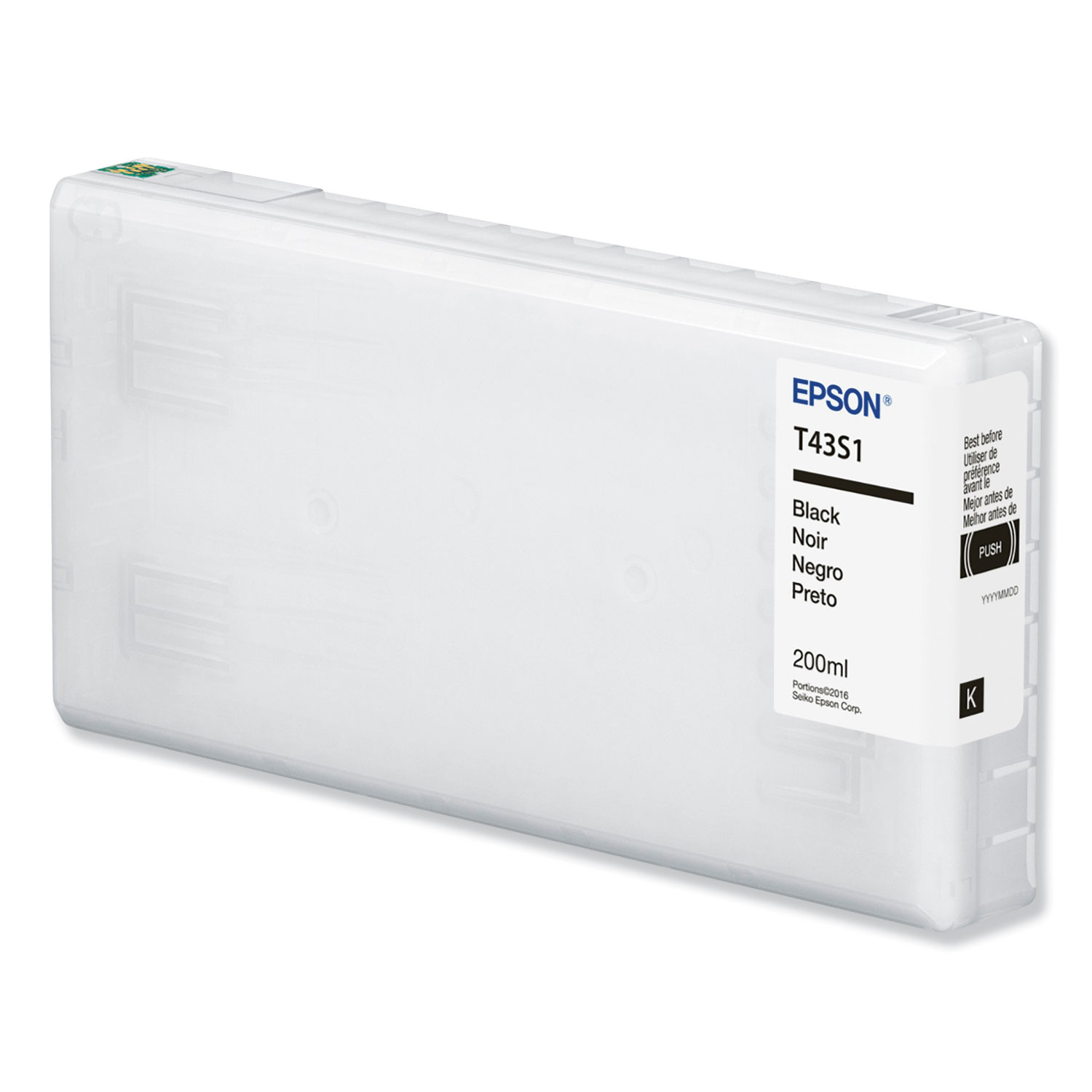 Replace only the cartridge that runs out with individual ink cartridges. Best of all, only one set of cartridges is needed to print amazing documents and great photos. There's no need to spend additional money on specialized cartridges to print on either plain or photo paper. Epson genuine ink produces prints that look brilliant on both plain and glossy photo paper. Device Types: Inkjet Printer; Color(s): Black; Supply Type: Ink; Market Indicator (Cartridge Number): T43S.