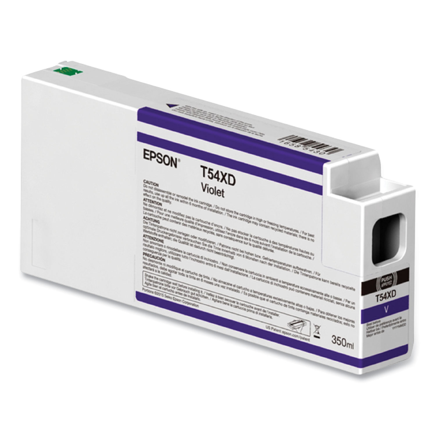 Replace only the cartridge that runs out with individual ink cartridges. Best of all, only one set of cartridges is needed to print amazing documents and great photos. There's no need to spend additional money on specialized cartridges to print on either plain or photo paper. Utilizing newly developed core pigments. The level of photographic clarity, optical density, and vibrancy represents a new benchmark for Epson. Device Types: Wide Format Inkjet Printer; Color(s): Violet; Supply Type: Ink; Market Indicator (Cartridge Number): T54X.