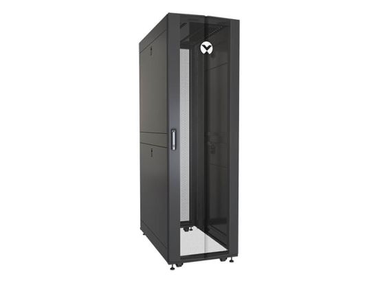 The Vertiv™ VR Rack VR3100 is a 42U server rack built with reliable engineering and is designed for simple and easy configuration. It has dimensions of 2000mm x 600mm x 1100mm (height, width, and depth), and has a deep frame that provides users around 2.5 inches more useable depth than similar sized racks. It has load capacities of 3,000 pounds static and 2,500 pounds dynamic. It is delivered ready for high density environments and supports a wide variety of rack-based equipment.