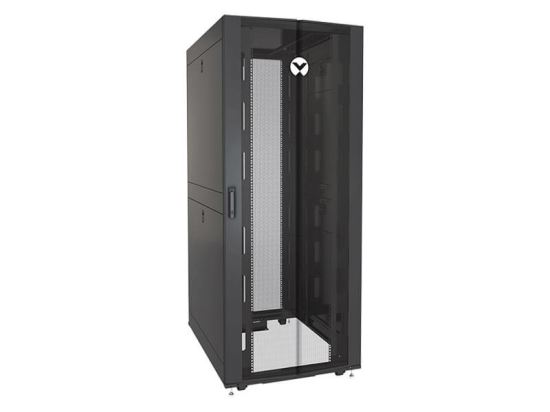 The Vertiv™ VR Rack VR3150 is a 42U server rack built with reliable engineering and is designed for simple and easy configuration. It has dimensions of 2000mm x 800mm x 1100mm (height, width, and depth), and has a deep frame that provides users around 2.5 inches more useable depth than similar sized racks. It has load capacities of 3,000 pounds static and 2,500 pounds dynamic. It is delivered ready for high density environments and supports a wide variety of rack-based equipment.