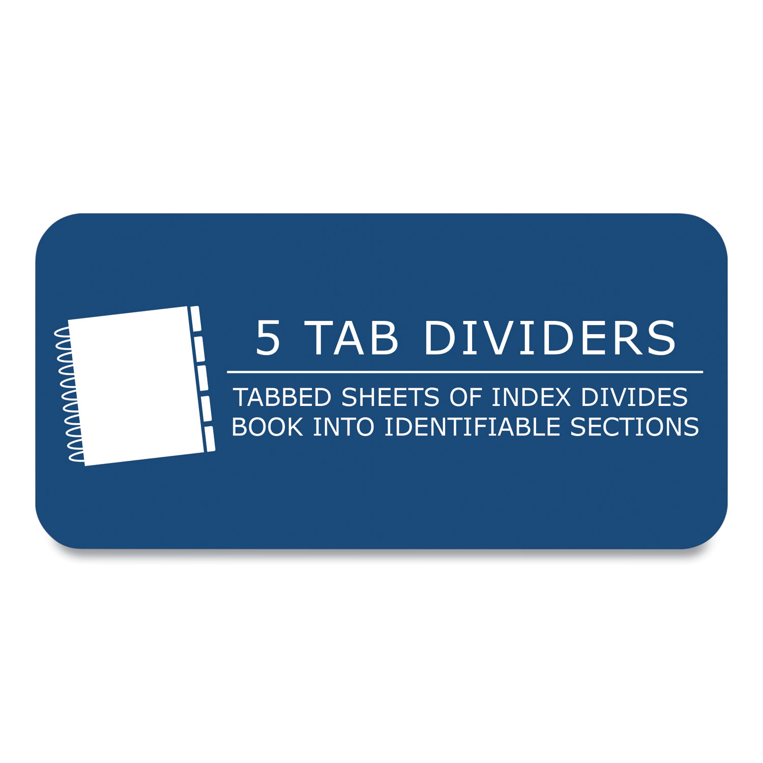 This five-subject wirebound notebook with tabs is ideal for the busy student. Five insertable tabs divide book into five 40-sheet sections. Each tab can be labeled for section identification. Smooth, white, 15-lb writing paper is college ruled with a red margin line. Wire ends are coil-locked for snag-proof performance. Pocket-Sized Indicator: N; Book-Binding Type: Spiral Coil; Book Binding Details: Coil-Lock; Book Binding Edge: Side.